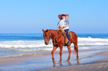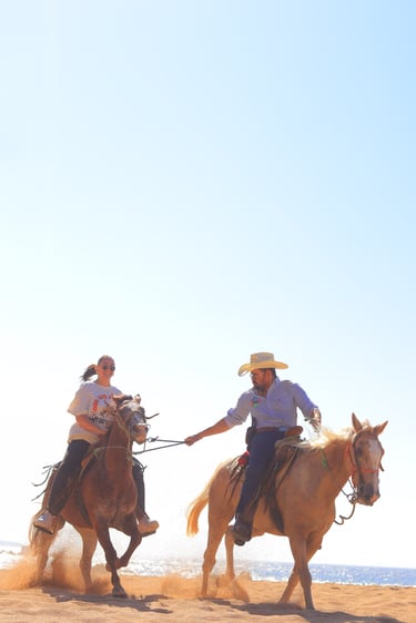 ☀️ 2-hour ride (Sunset) 5pm – Enjoy a magical horseback ride along the beach as the sun sets over the Pacific.